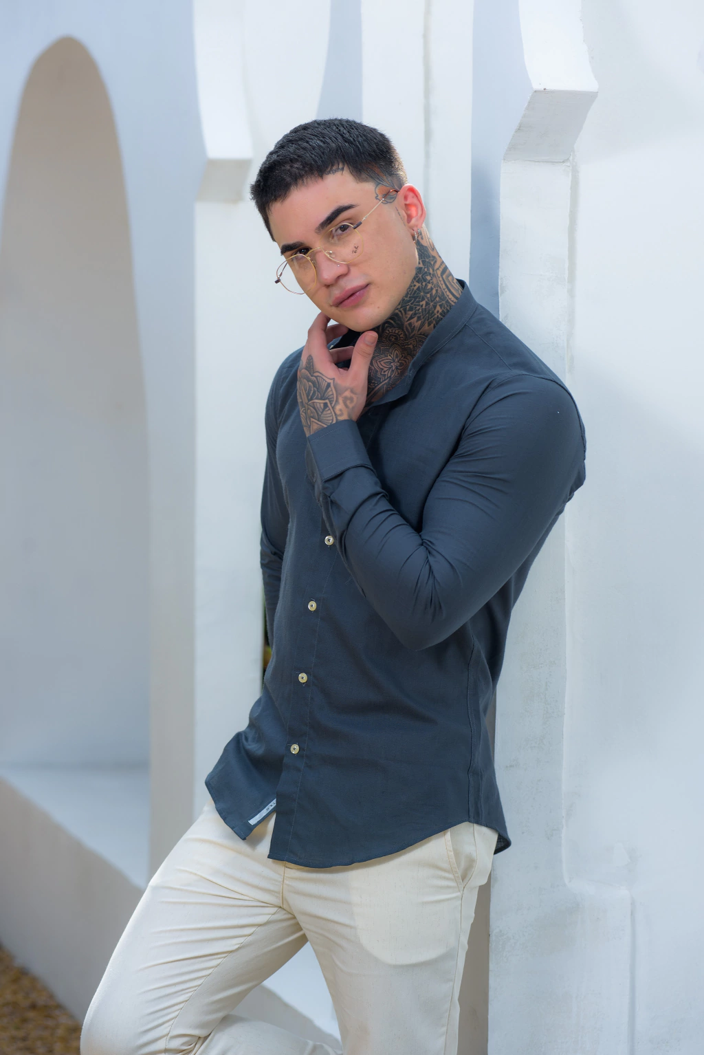 Dicas de Estilo: Combine com calças de sarja para um visual casual e elegante ou com um terno para eventos formais. A camisa gola padre é uma peça versátil que adiciona um toque de classe a qualquer look.